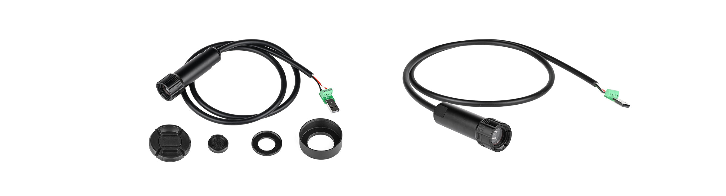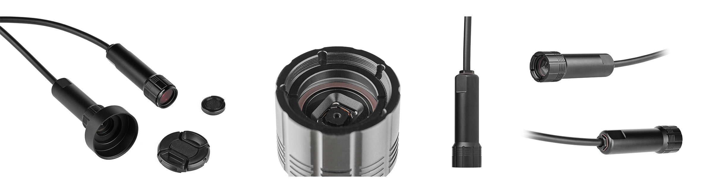 このモジュール構成により、小型レンズキャップを使用したコンパクトな構成、またはフードと専用キャップを使用した反射防止構成のいずれかを選択できます。