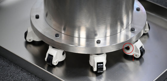 チャンバーを移動させる必要がない場合は、支点ホイールを段付き耐荷位置に固定してください。